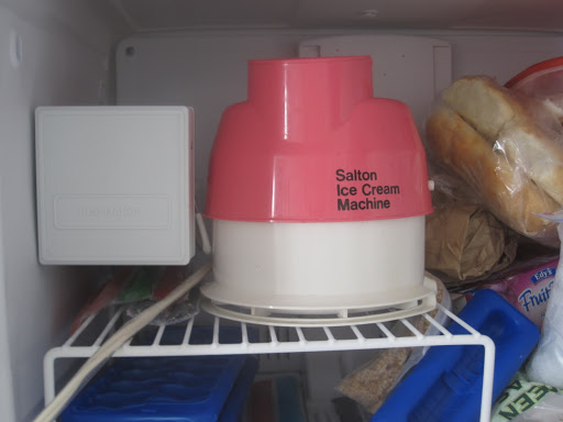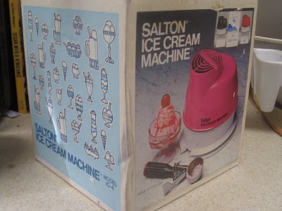 My ice cream maker is pretty much the coolest one in the world. I bought it at Goodwill for $3.99. It was still in its original beat-up box.