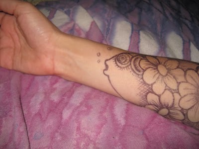 | My friend Ken drew this fish “tattoo” on me because I am crazy fish girl. |